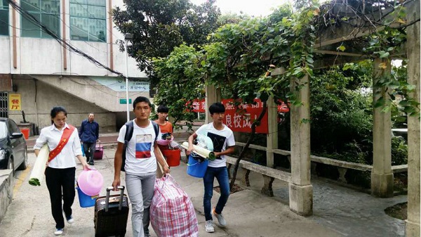 由學生干部組成的志愿者也在各接待點緊張忙碌著,為新生搬運行李,引導他們辦理入校手續。